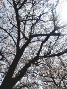 晴れた日の桜の樹を通った陽射しが落とした木漏れ日が足元の世界にもう一つの桜の樹を咲かせる水曜日