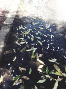 雨風に散った落ち葉や桜の花びらが静かに漂っていました