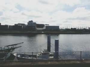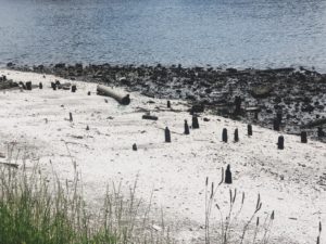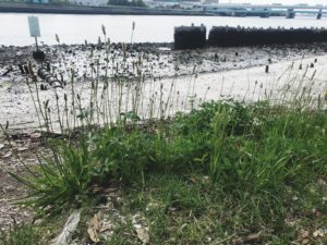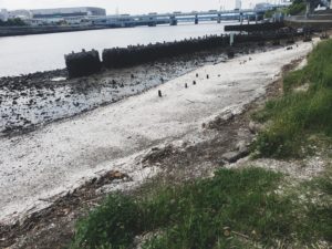 潮の引いた川、いつもとは反対側の船の停泊する川沿いへ橋を越え渡り小さな浜を感じ風を感じた一瞬