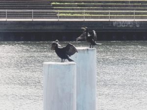 川面の杭の上に留まる川鵜も同じように羽を広げそんな心地よい空気をめいいっぱい感じているんだろうなと思うような