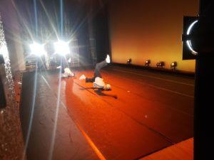 舞台のリノリウム敷きなどインストラクター皆で子供達の為の舞台づくり、会場づくり、楽屋の準備