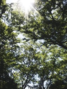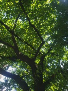 見上げた大きな樹々はどれも気持ちが良いくらい夏色で