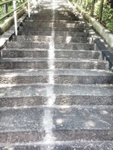 緑に囲まれた階段、此処もまた暑さよりも涼しさを感じます