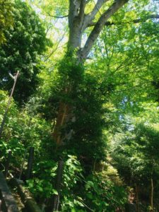 暑い日曜日、レッスン前に緑を感じ木漏れ日と緑の風を感じた時間