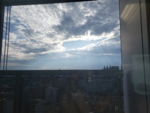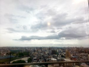 昨日からの雨が降り続いているように感じる空色、12階から見た高い空、目の前を風に運ばれ進む雲が泳ぐ、祝日·山の日の今日、祝日の街の空気とは違い空は忙しそうです……