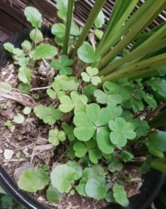 夏入院前に実家の外の通路にうずくまっていたセミを鉢植えの小さな緑の世界に逃がしてあげ