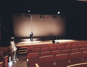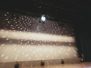 本番前の舞台、静かな空間に証明が灯り