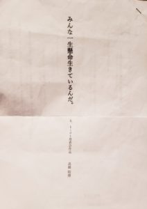 台本を読ませて頂いて、字間を目で追うテンポのせいなのか、サンボマスターさんの奏でるリズムが浮かんできました。「生きろぉぉぉ」と山口さん(Vo)の魂のシャウトが聞こえてきました…笑