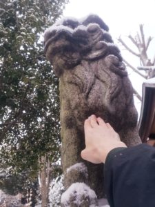 日曜日の朝は少し温めの水と言うかお湯をあげそのまま雪景色の神社へふわふわの雪の積もった階段を下り