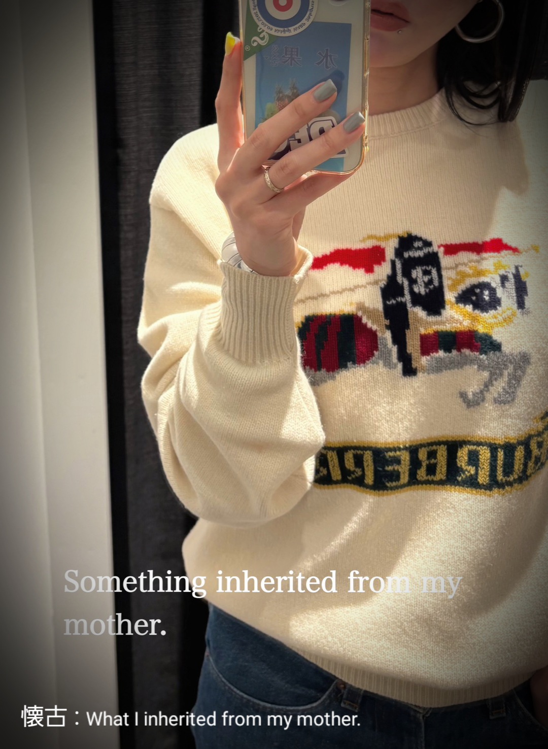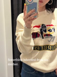 I occasionally receive clothes from my mother, who has loved fashion since she was young, and I appreciate her good taste and the good old designs and materials of the clothes.