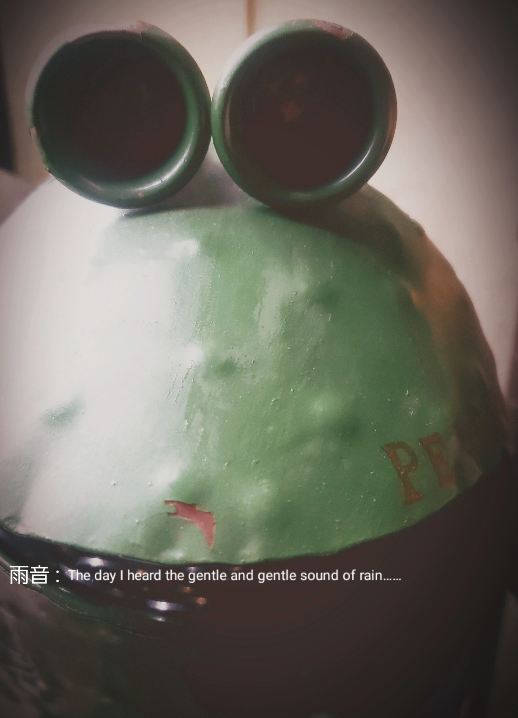 At the entrance of my house, the frog PEACE continues to see me off every day.