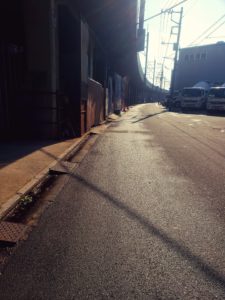 重たい雲に覆われた工業地帯を進み病院の前へ