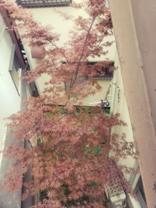 気づけば階段下の紅葉は背が伸び優しい色をし