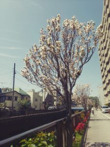I felt the gentle colors of spring from the flowers I saw along the small river flowing through the city.